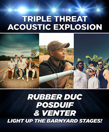 Johannesburg, South Africa – Get ready to dance, sing, and feel the unbeatable vibe of South Africa's hottest acoustic sounds! The iconic Barnyard Theatre is rolling out the red carpet for an unmissable two-night acoustic showdown featuring the nation's most loved Acoustic Dance Band Rubber Duc, SAMA-winning Afrikaans sensations Posduif, and the electrifying newcomer shaking up the scene – Venter.