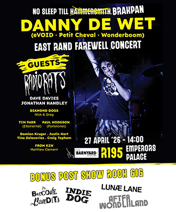 After decades based on the East Rand while performing in eVOID, Petit Cheval, Electric Petals and Wonderboom, Danny de Wet is relocating to Durban and he says goodbye to Gauteng with a concert, make that 'extravaganza', on the the afternoon of the public holiday, Monday 27 April 2026 at the Emperors Palace Barnyard Theatre.